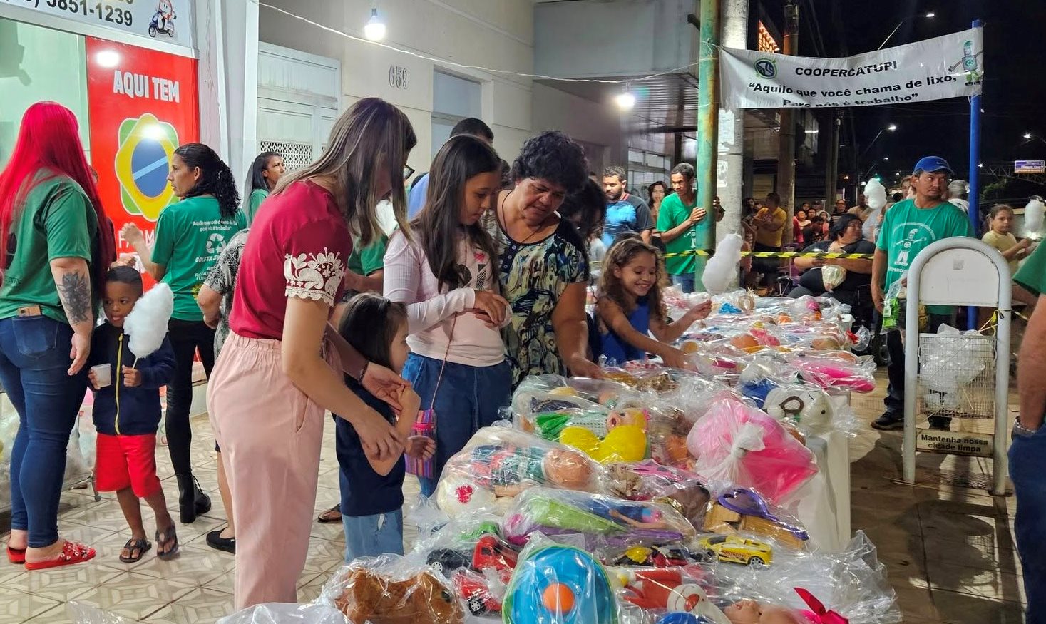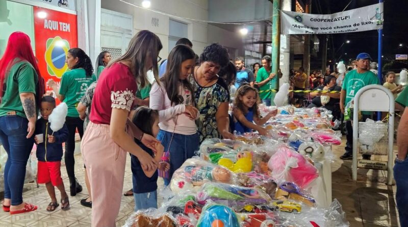 A entrega ocorreu na noite desta sexta-feira (3), em frente a FARMAIS, quando 480 brinquedos recuperados, entre bonecas, bolas, carrinhos, pelúcias, entre outros, foram entregues às crianças.
