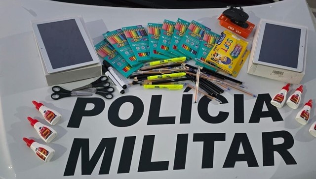 As imagens captadas pelas câmeras de monitoramento do estabelecimento de ensino indicaram que os menores entraram no prédio por uma porta destrancada e pegaram os objetos escolares.